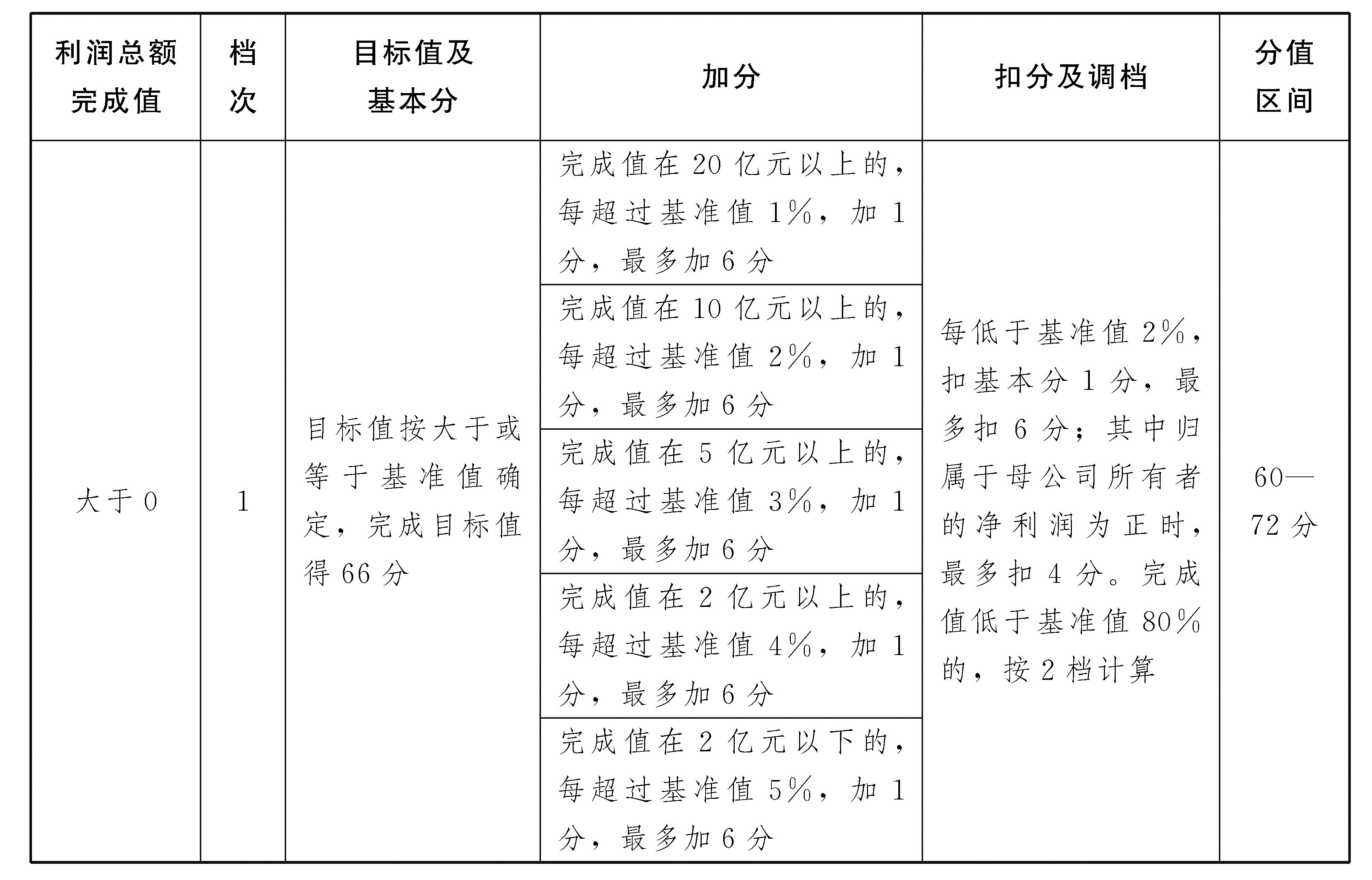 1.利润总额以企业董事会确定的年度目标数作为考核目标,考核目标应与财务预算衔接,根据目标值与基准值的差异分档计分。