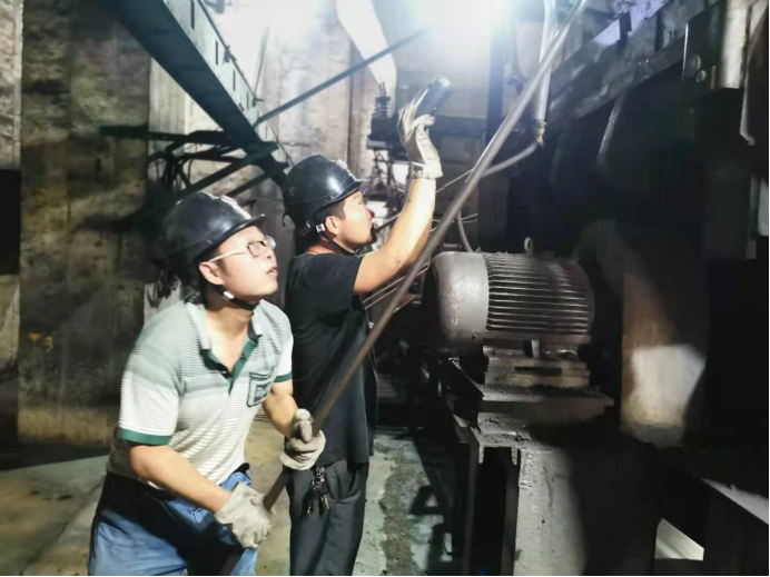 为了保证产品质量,洗煤车间加强从207#原煤入洗皮带的煤量均衡问题进行现场指导督促,加强现场安全管理,积极组织人员掏仓,确保原煤入洗皮带上的煤量稳定。车间以带班主任、班长带头,只要301#皮带上出现无煤、量少、煤量不均衡等问题,主任、班长带头上前,射的射电筒,掏的掏仓,左边窗口掏过掏右边,杆子从短杆换长杆,扁口换尖头,想方设法交替地掏,为的就是保证入洗量的均衡。掏仓可是一个技术活加体力活,大家争先恐后的抢着干,不一会,大家头发上、脸上的汗水往下滴,衣服早已被汗水湿透,通过大家辛苦的付出,保障了入洗量的稳定和产品质量的稳定,为矿的经济效益最大化做出了应有的贡献。( 兴云选煤厂 王加福)