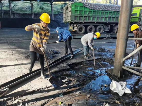 为加快推进兴云选煤厂外运装车点储煤场的大棚建设进度,切实做好厂区的环境保护工作,避免煤尘飞扬污染环境,杜绝环境污染事故的发生。化验车间按照厂的工作安排,于11月8日至11月10日,在保证正常生产的前提下,利用生产空闲时间,组织车间职工对兴云选煤厂外运装车点大棚柱子底部的积煤进行清理,确保土建对大棚柱子底部防撞墩浇筑施工顺利进行。大棚柱子底部地点狭窄,积煤、积水多,清理难度大。化验车间党支部书记李正红同志带领大家冒着严寒分工协作,打积水,铲积煤、拉推车,冒着严寒站在水里,不怕苦,不怕累地工作着,看着一棵棵柱子底被清理干净,大家沾满煤泥的脸上露出了喜悦的笑容。经过3天的组织清理,共清理21棵大棚柱子底部积煤,确保了土建浇筑柱子防撞墩施工的有序进行,加快推进了大棚施工的进度。为改善厂区环境卫生,切实做好环境保护工作打下了坚实的基础。