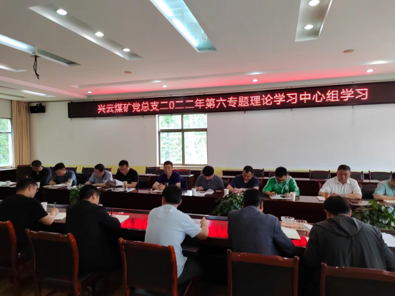 6月7日下午,兴云煤矿党总支副书记赵明光主持召开第六专题理论学习中心组(扩大)专题学习会,公司党委书记王学文到会旁听,共计28人参加学习。