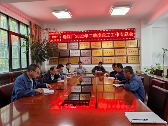 6月13日,选煤厂党总支书记组织总支班子成员、车间支部书记共计9人召开二季度政工作会议。