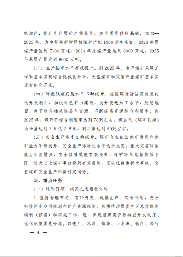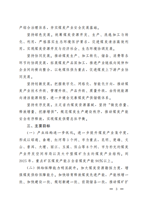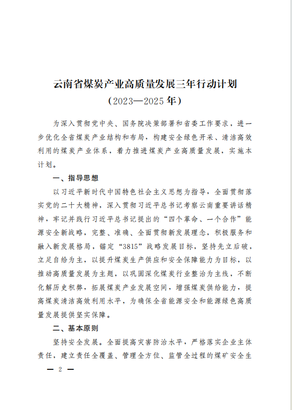 云南省人民政府办公厅近日印发《云南省煤炭产业高质量发展三年行动计划(2023—2025年)》(云政办发 [2023] 46 号)。