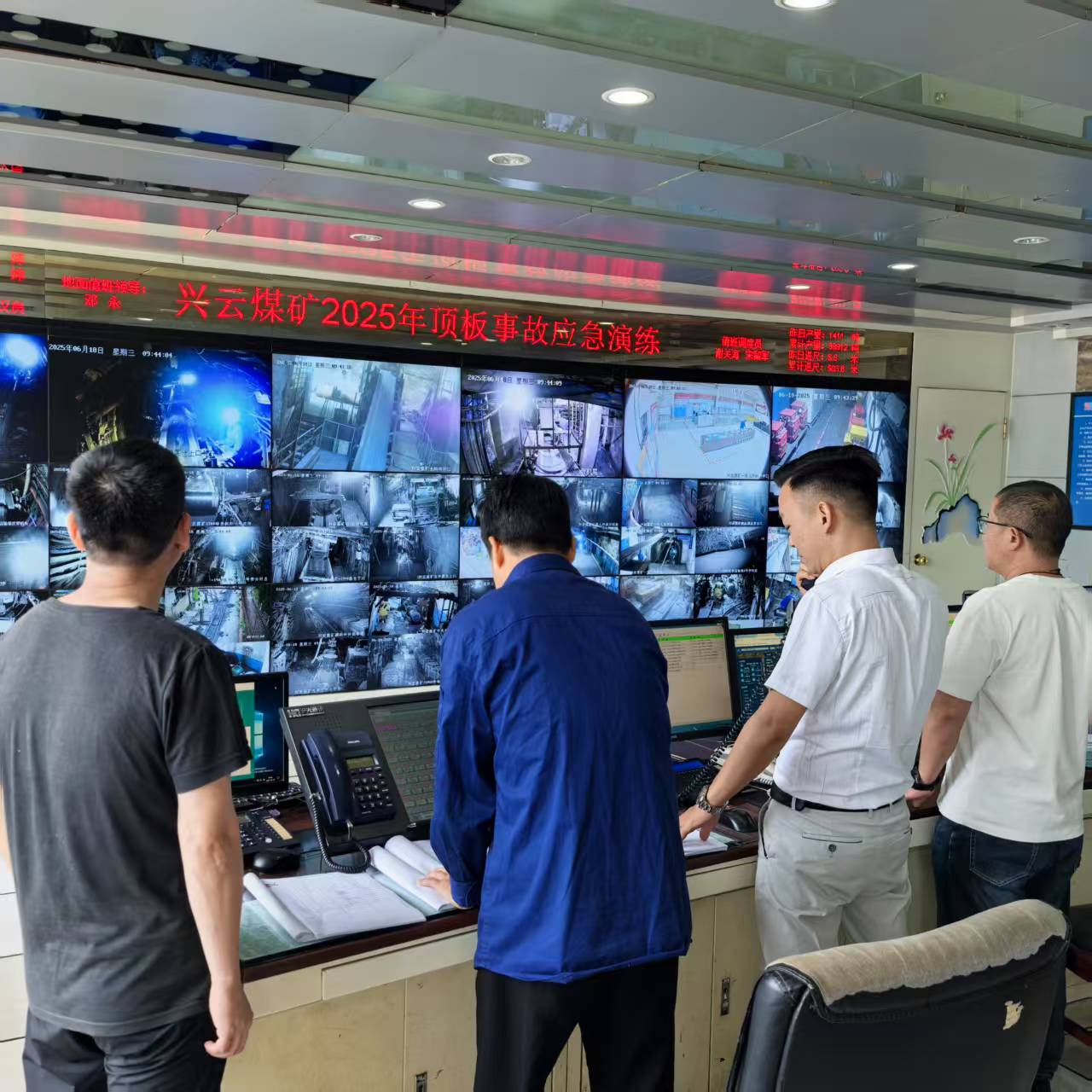 此次演练,模拟七采区7091综采工作面1#支架至端头支护段因周期来压造成煤壁片帮及顶板局部垮冒,发生顶板事故,综采一队及其受顶板事故威胁区域的人员撤离并启动响应程序汇报的应急演练。“事故”发生后,现场作业人员立即按照应急预案要求,迅速向调度室报告事故情况,包括地点、冒顶范围以及人员被困状况等关键信息。调度室在接到报告的第一时间,迅速启动顶板事故应急预案,同时向矿长及各应急救援小组负责人通报情况,各应急救援小组迅速集结,携带专业救援装备赶赴事故现场。