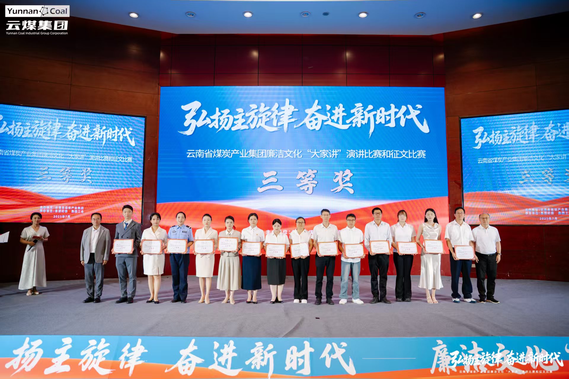 在“弘扬主旋律 奋进新时代”廉洁文化“大家讲”演讲比赛中,廖敏以《不得》为题,凭借极具深度的演讲内容与富有感染力的表达技巧,赢得了评委的高度认可和现场观众的热烈掌声,最终荣膺三等奖。在赢得荣誉的同时,也展示了公司干部职工昂扬向上的精神风貌与时代风采。