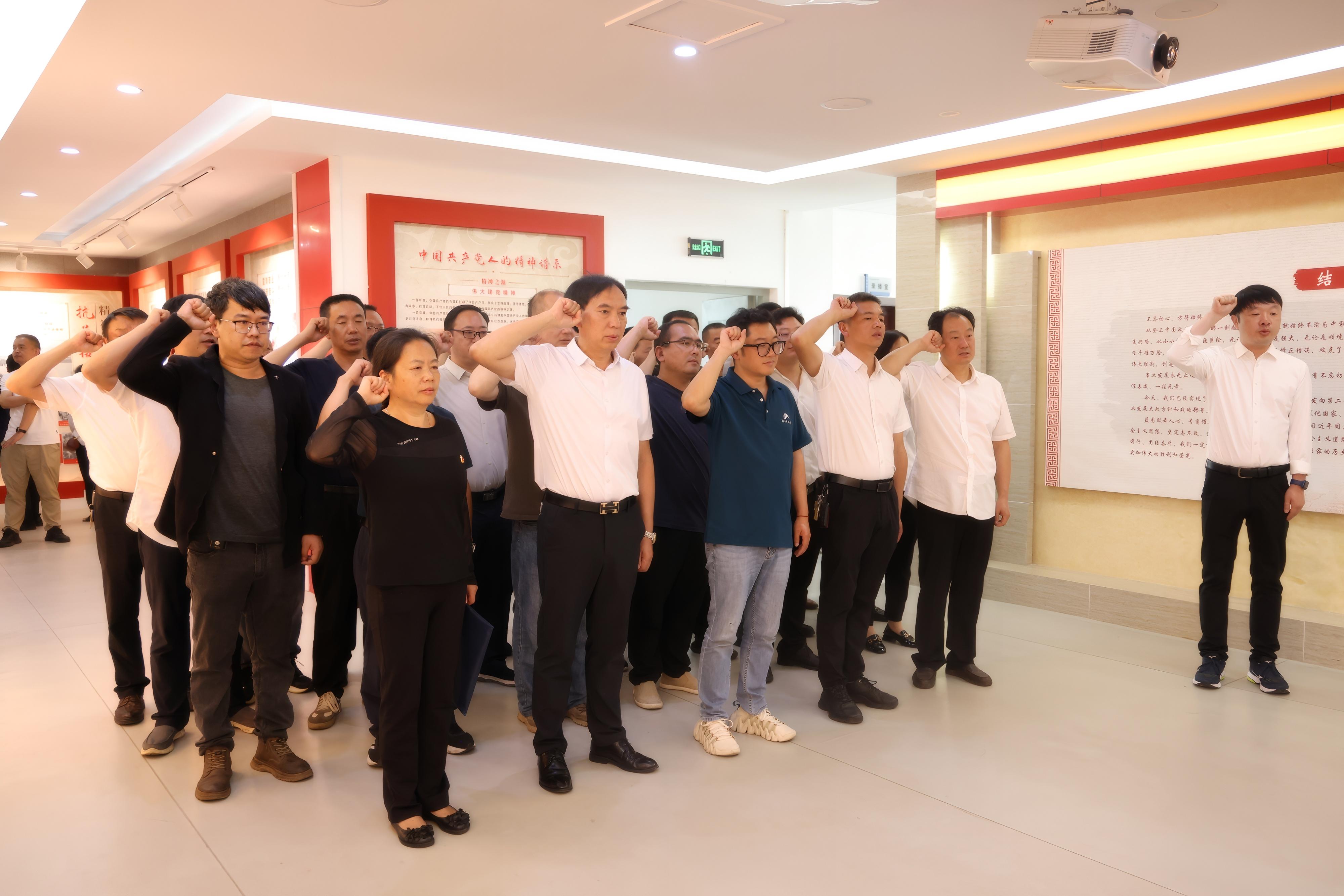 “我志愿加入中国共产党……”参观结束后,全体党员整齐列队,面向鲜红的党旗,庄严地举起右拳,重温入党誓词。铿锵有力的宣誓声在基地内久久回荡,这不仅是对入党初心的回溯,更是对廉洁自律、忠诚担当的庄严承诺,彰显了党员干部永葆政治本色、坚守廉洁底线的坚定决心。