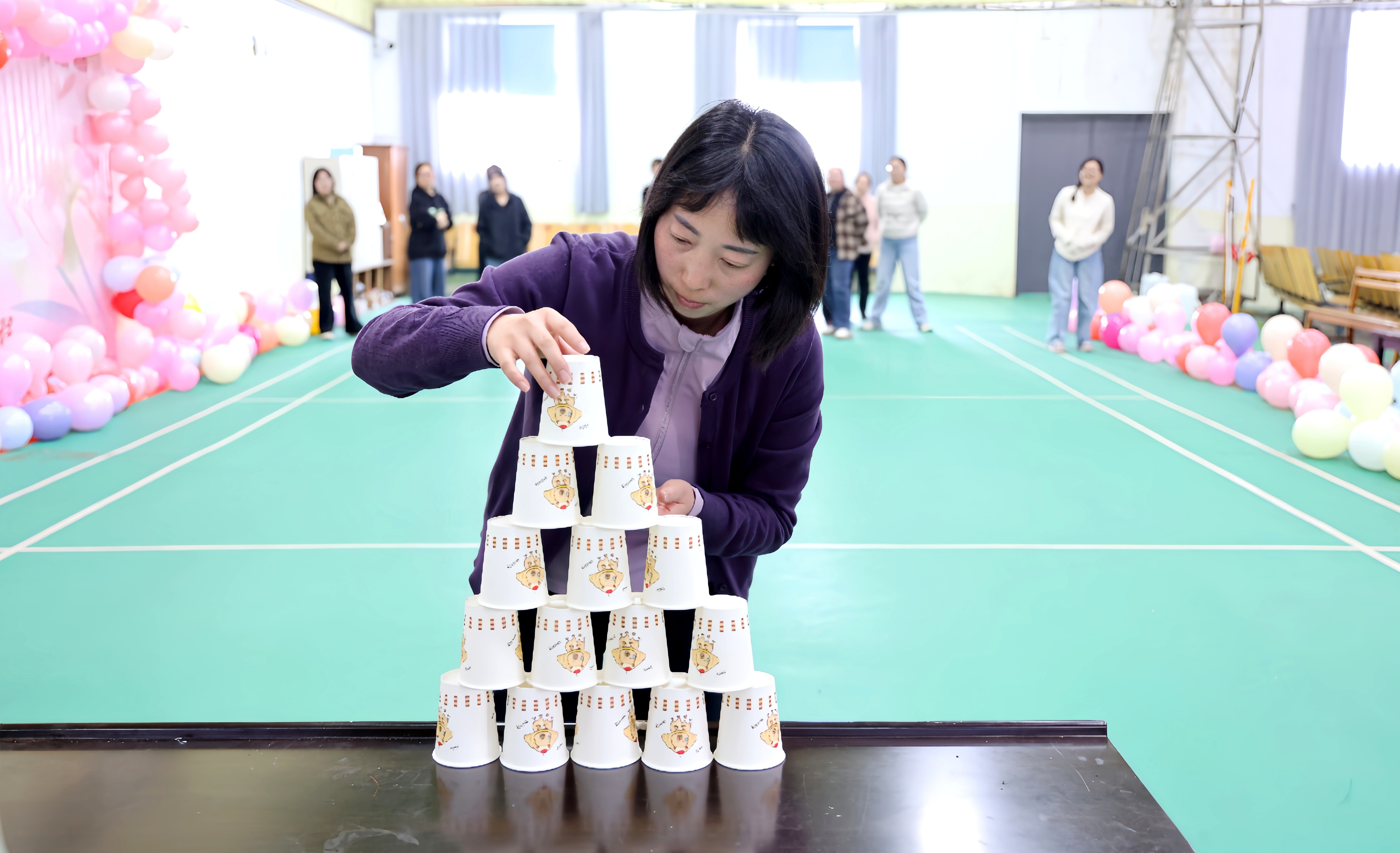活动现场暖意融融、欢声笑语不断。女职工们随机组建三个小队,以饱满热情投入趣味比拼。“趣味羽毛球”别出心裁,以不锈钢盆代替球拍,灵动接球、巧妙攻防,别样玩法尽显运动趣味;“叠纸杯接力赛”紧扣协作核心,大家凝心聚力、默契配合,精准传递、稳步堆叠,展现出细致严谨、团结高效的优良作风;“蒙眼走猫步”趣味十足,队员们大胆迈步,姿态各异、妙趣横生,走出了独特的“T台”步伐;“赶猪进笼”比拼技巧与策略,大家手持纸板默契协作,全力引导“小猪”顺利入笼,加油声、欢呼声此起彼伏,处处洋溢着团结奋进、乐观向上的蓬勃朝气。